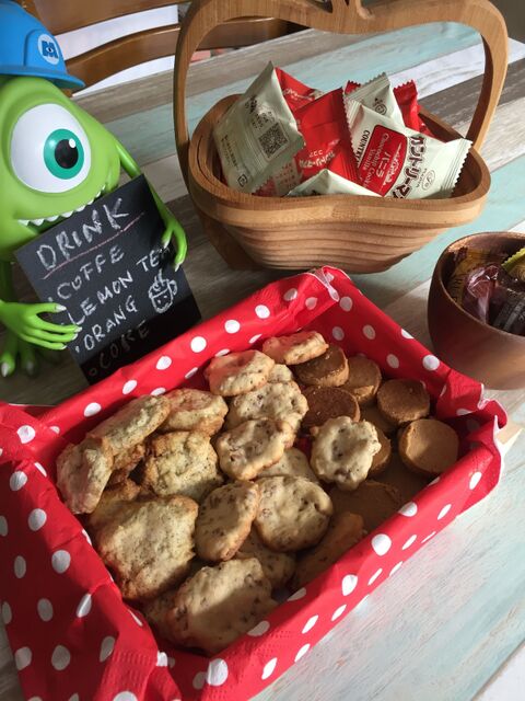 こんにちは スイーツバイキングで提供している手作りクッキーです パフェ作りコーナーで盛り付けたパフェにトッピングしてみてください もちろんそのままお召し上がりいただいても大丈夫ですよ 写真ではパンダと笑顔のクッキーですが日によって手作りクッキーのデザインは